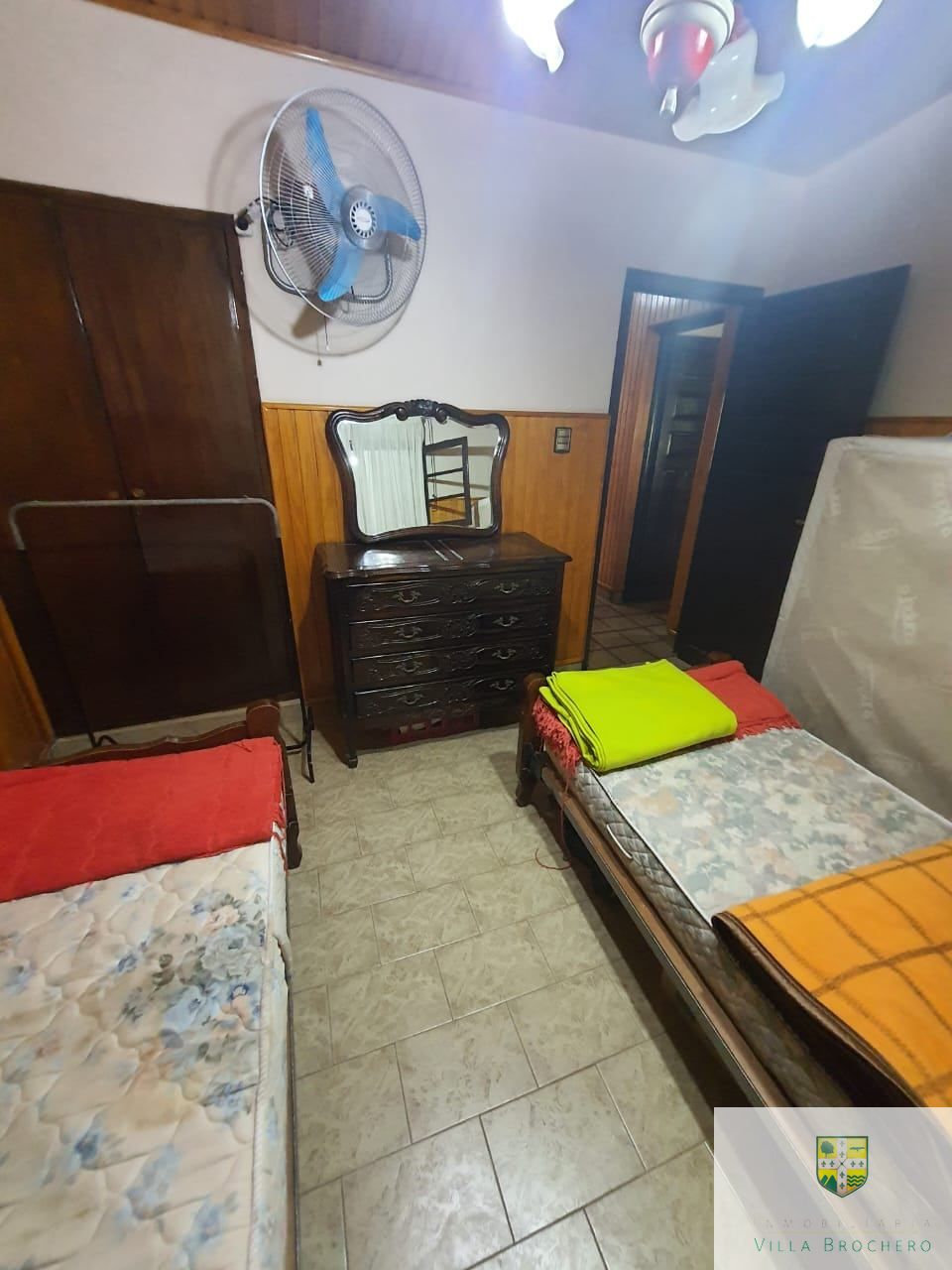 Comodidades: la vivienda se encuentra en amplio terreno contando con parque tanto al frente como al fondo de la vivienda. Al ingresar nos encontramos con un amplio living estar con una decoración única con muebles antiguos, en el cual se encuentra una mesa con sus respectivas sillas, desde el living accedemos a un pasillo que nos conduce en primer lugar a nuestra derecha al dormitorio matrimonial, totalmente machimbrado, luego accedemos al primer baño, y a un segundo dormitorio con dos camas singles.( los dueños dejan un colchón matrimonial para el caso que deseen unir las camas para obtener una segunda cama matrimonial), y por último se accede al comedor cocina, totalmente equipada con vajilla para 10 personas, heladera, cocina y microondas, tiene ventilador de techo.