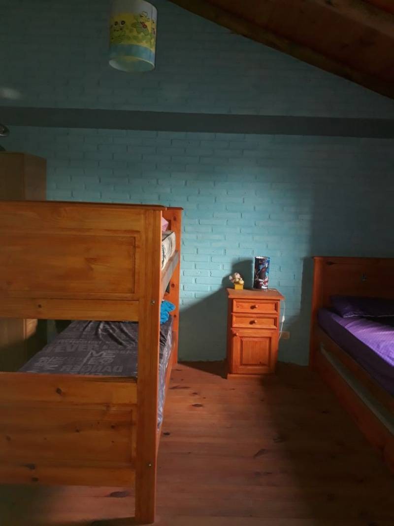 En planta alta, se encuentra el segundo baño, dos dormitorios, uno con cama matrimonial y el otro con dos cama cuchetas. También encontramos un tercer ambiente abierto con una cama matrimonial. Total de plazas 8. Ventiladores de pie en los dormitorios, y en el comedor.